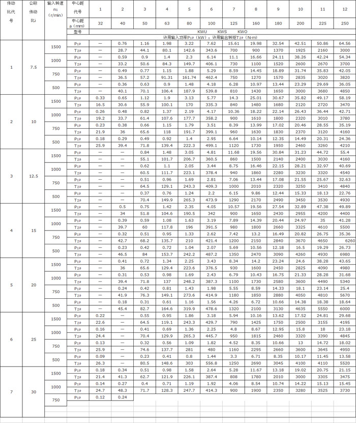 KW型減速器的許用輸入功率和許用輸出轉(zhuǎn)矩